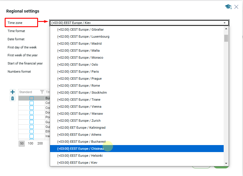 You can select the desired time zone from the dropdown list: