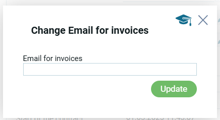 Для редактирования E-Mail нажмите на иконку справа от поля, откроется модальное окно для внесения изменений.