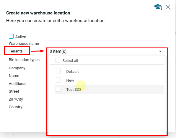 В обоих случаях откроется модальное окно для создания / редактирования склада.