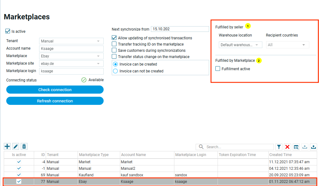 На примере торговой площадки eBay рассмотрим какие настройки складов доступны в ERP Billorga.
