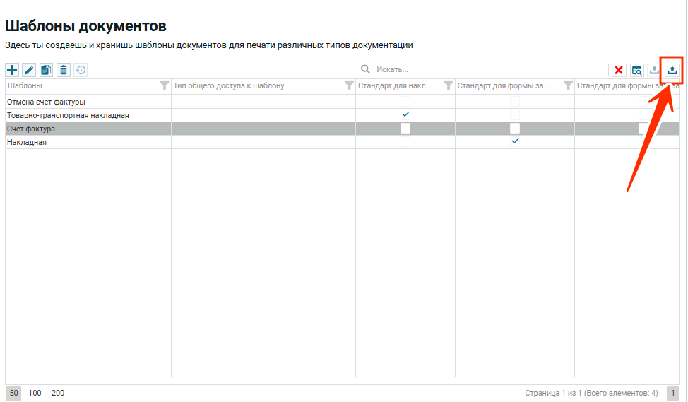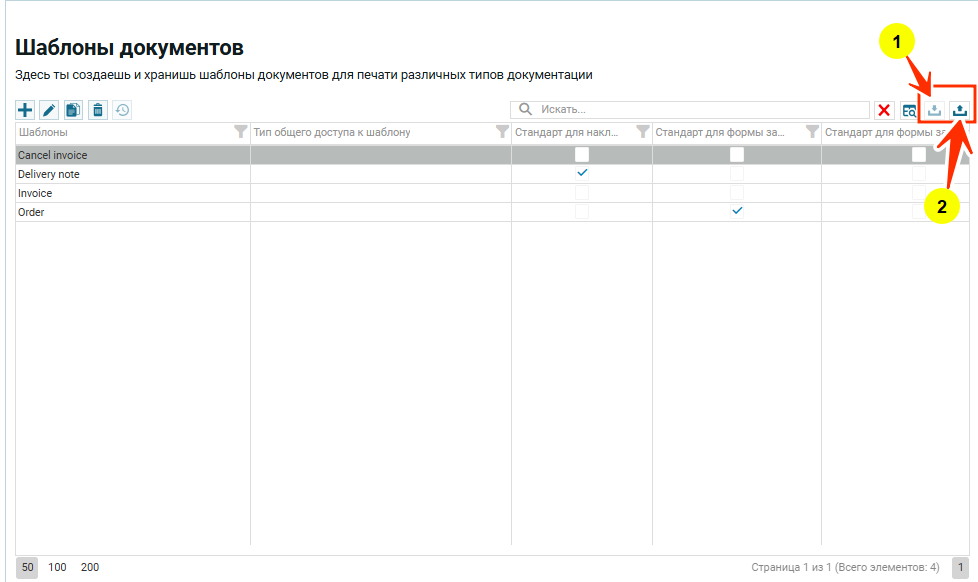 Внизу на скрине выделено две иконки: импорт данных, экспорт данных. Описание каждой функции ниже под таблицей.
